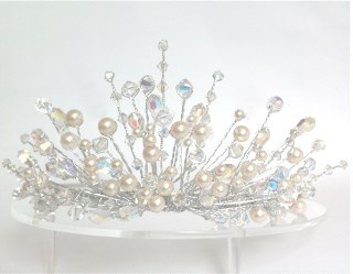 High Tiara with AB Crystal and Ivory Pearls